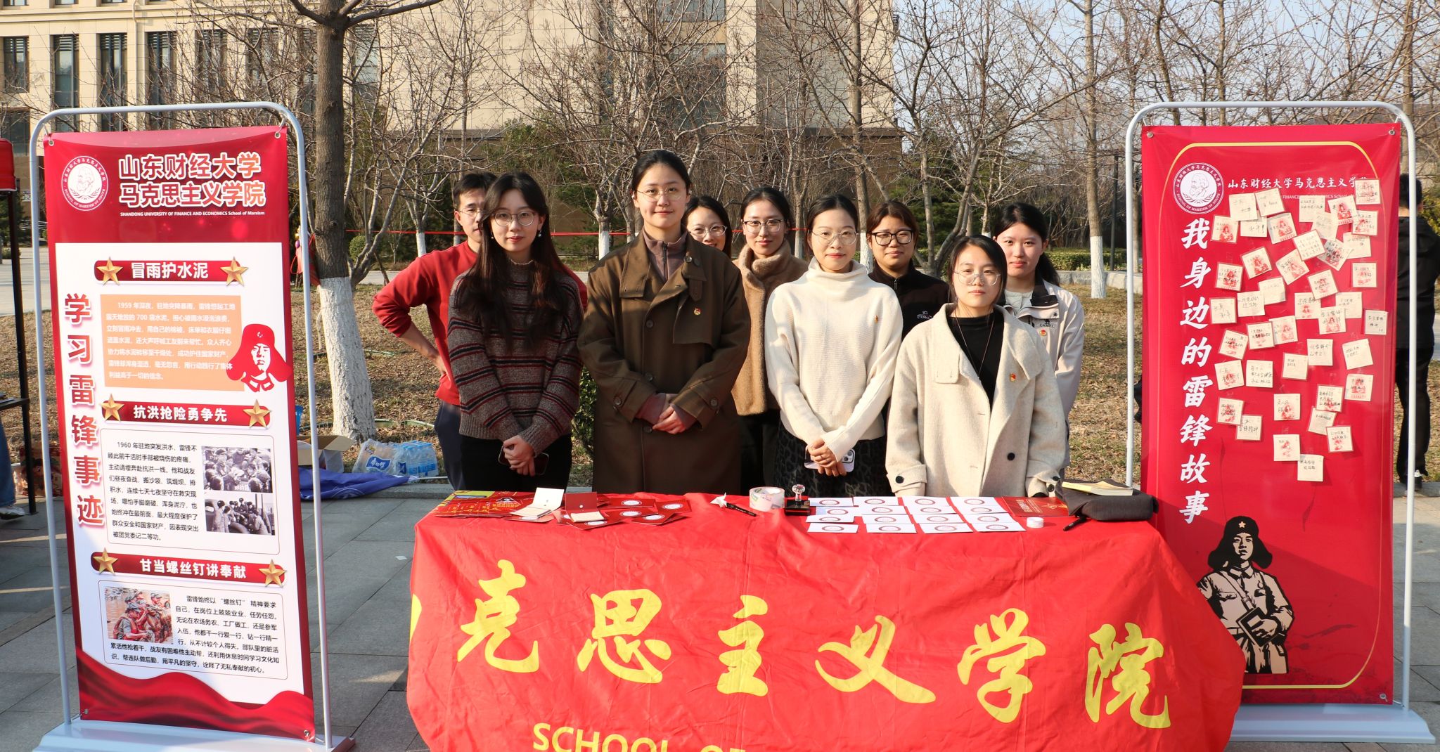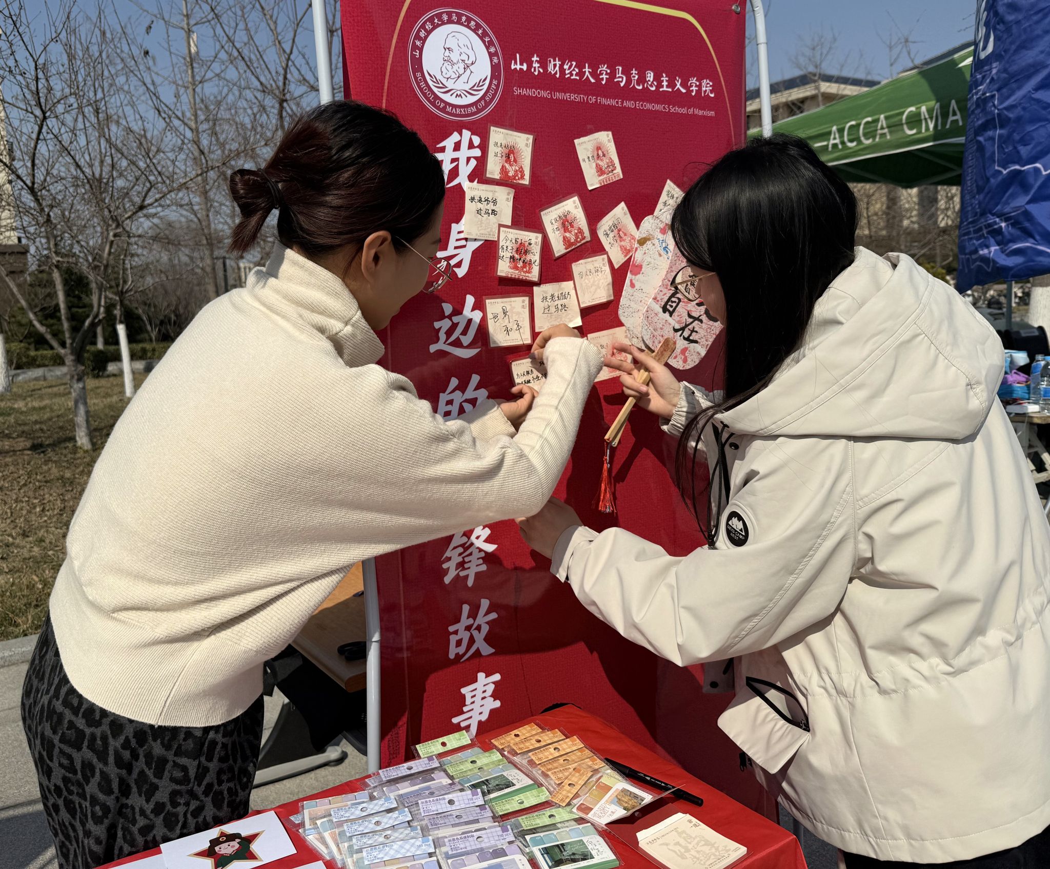 春风送暖,万物复苏。为深入学习贯彻习近平总书记关于弘扬雷锋精神的重要论述,引导广大青年学生在实践中践行社会主义核心价值观,3月19日,山东财经大学2026年度学雷锋系列活动——奉献之光·追“锋”游园会如期举办。马克思主义学院积极响应校团委号召,大力弘扬雷锋精神,以极具学院特色的摊位活动吸引了众多师生参与,营造了浓厚的学雷锋文化氛围。