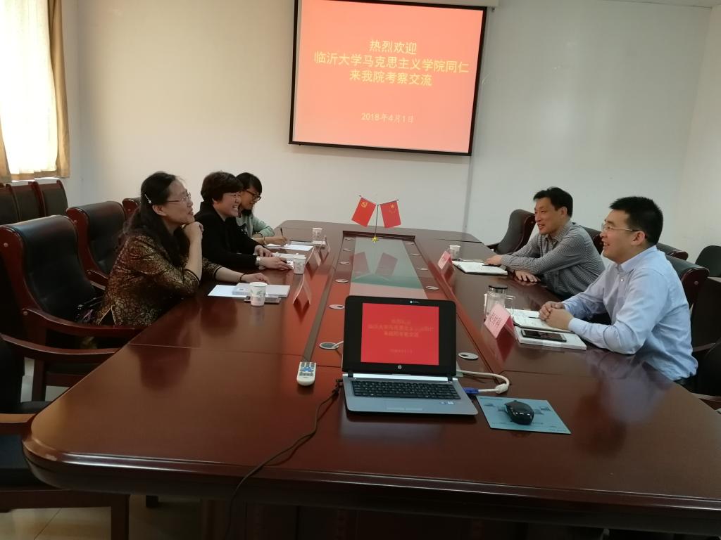 沈院长首先代表马克思主义学院对张立梅副院长一行的来访表示欢迎。在简要介绍我院基本情况后,沈院长介绍了学院的发展历史、师资、机构设置、科研、教学改革、学科建设、研究生招生培养等情况。张立梅副院长也介绍了临沂大学马克思主义学院的基本情况。双方就思政课教学改革、马克思主义学院建设等问题又进行了深入的探讨和交流。