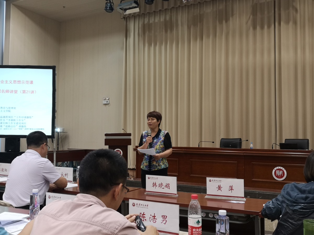 本次活动,应邀展示的均为在全国或天津市教学比赛中获奖的优秀教师。来自绵阳师范学院的韩晓娟主讲“戊戌变法失败的原因和历史启示”,天津外国语大学的郑海呐主讲“中国特色社会主义文化”,天津师范大学的于江涛主讲“科学评价历史伟人毛泽东”,天津职业大学的陈浩男主讲“培育和践行新时代文化自信”,天津城建大学的屈彩霞主讲“新民主主义革命道路与井冈山精神”,天津工业大学的杨永利主讲“供给侧结构性改革”。期间,绵阳师范学院韩晓娟、天津师范大学李朝阳两位专家分别做了《强化“三三三”教学体系,打造“六味”课堂,增强思政课实效性》、《“三入八讲”法在思政课教学中的运用》为主题的教学经验介绍。另外,我院毛玉美教授参与了会议的主持人与点评工作。这些优秀教师的教学展示体现了新时代思政课的思想性、理论性和亲和力、针对性的有机统一,参会的老师们一致认为此行收获很大。会议结束后,我院教师还参观了天津师范大学马克思主义学院。