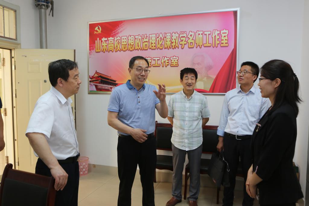 6月5日,山东省委教育工委副书记、省教育厅党组副书记、副厅长冯继康来到山东财经大学,出席《立德树人跟党走》专题片开机仪式,并提出学校要切实增强思政课的实效性针对性,教育引导青年学生做红色基因的坚定传承者、亲身参与者、忠实践行者。随后,学校党委书记王邵军陪同冯继康来到马克思主义学院进行调研,详细了解了马克思主义学院的师资力量、办公条件、教学改革、学科建设等工作,视察了山东高校思想政治理论课教学名师工作室——“徐莹工作室”的建设情况。徐莹工作室目前已经完成了基本制度建设,并制定了具体可行的工作室建设发展规划,工作室团队成员正按照计划稳步推进教学改革和科学研究等相关工作。