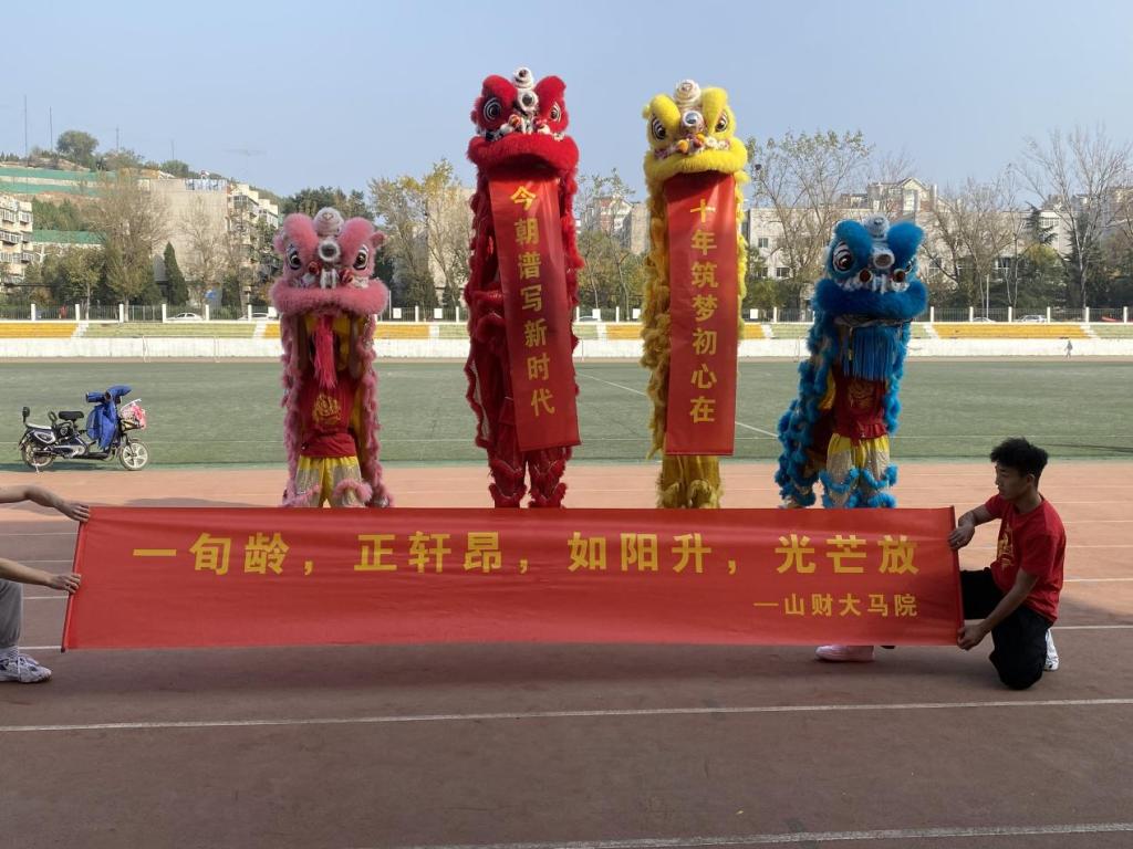 体育学院传统武术文化社团应邀在开幕式上表演舞狮节目