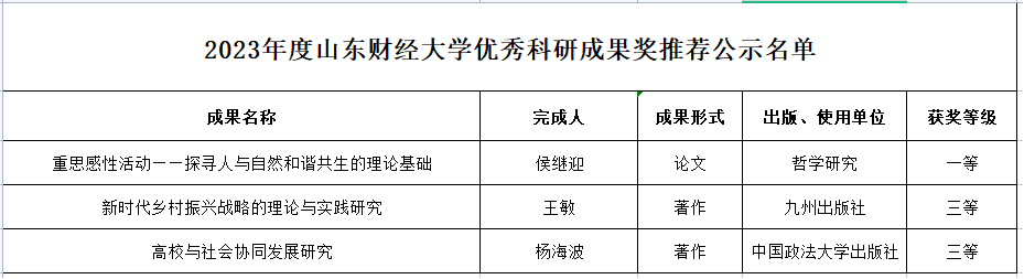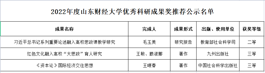 我院教师荣获六项山东财经大学优秀科研成果奖