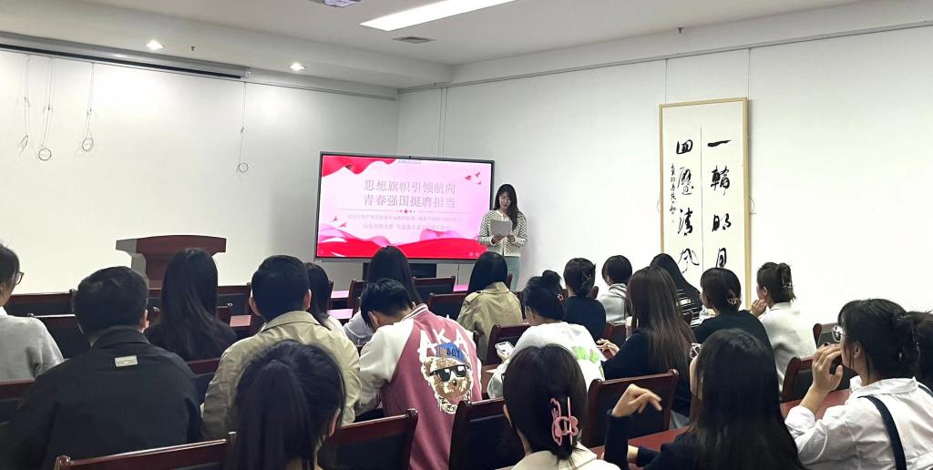为深入学习宣传习近平新时代中国特色社会主义思想的核心要义,全面落实团十九大各项部署要求,增强同学们的思想认同感,号召青年团员筑牢思想根基、砥砺初心、勇攀高峰,主动担负起时代赋予青年的重任。山东财经大学马克思主义学院团支部于2023年10月17日开展了“思想旗帜”主题团日活动,学院全体团员参加。