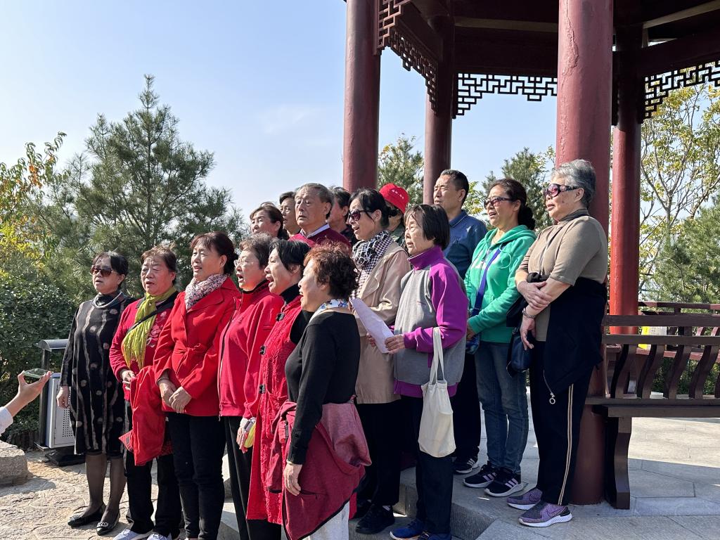 抵达山顶后,大家在凉亭中,围坐在一起,分享登顶望远的喜悦。随后,一曲《夕阳红》宛转悠扬,为本次活动增添了别样的欢乐与温情。