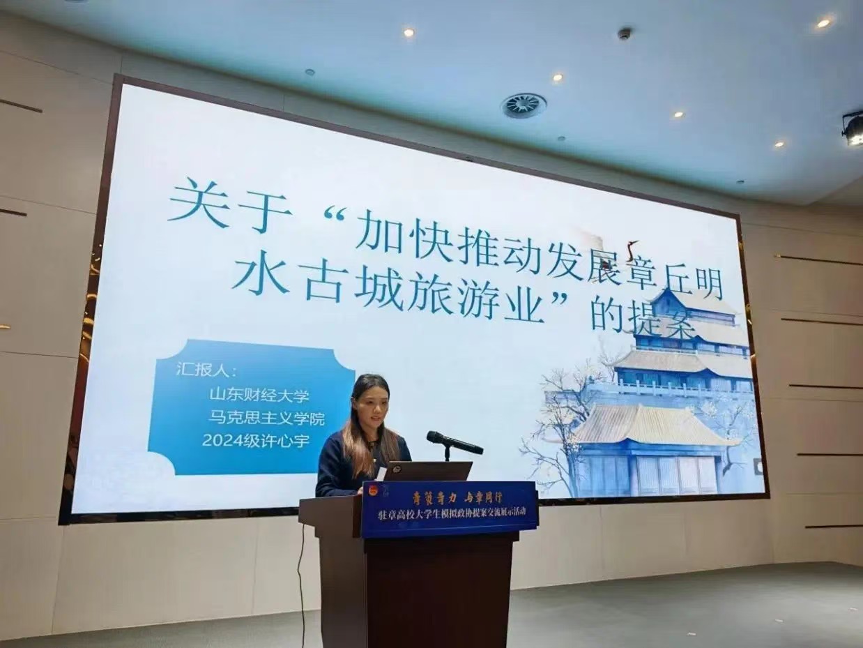 值得一提的是,获奖提案中四份关于章丘区经济社会发展综合提升的提案凭借精彩的现场答辩展示,获评“优秀模拟提案”,《关于推动章丘区农村电商发展与产业集群建设的提案》获评“十佳提案”,充分展现出学子对地方发展的积极关注与智慧贡献。此次大赛引起了热烈反响,同学们以极高的热情投入到提案的筹备工作中。