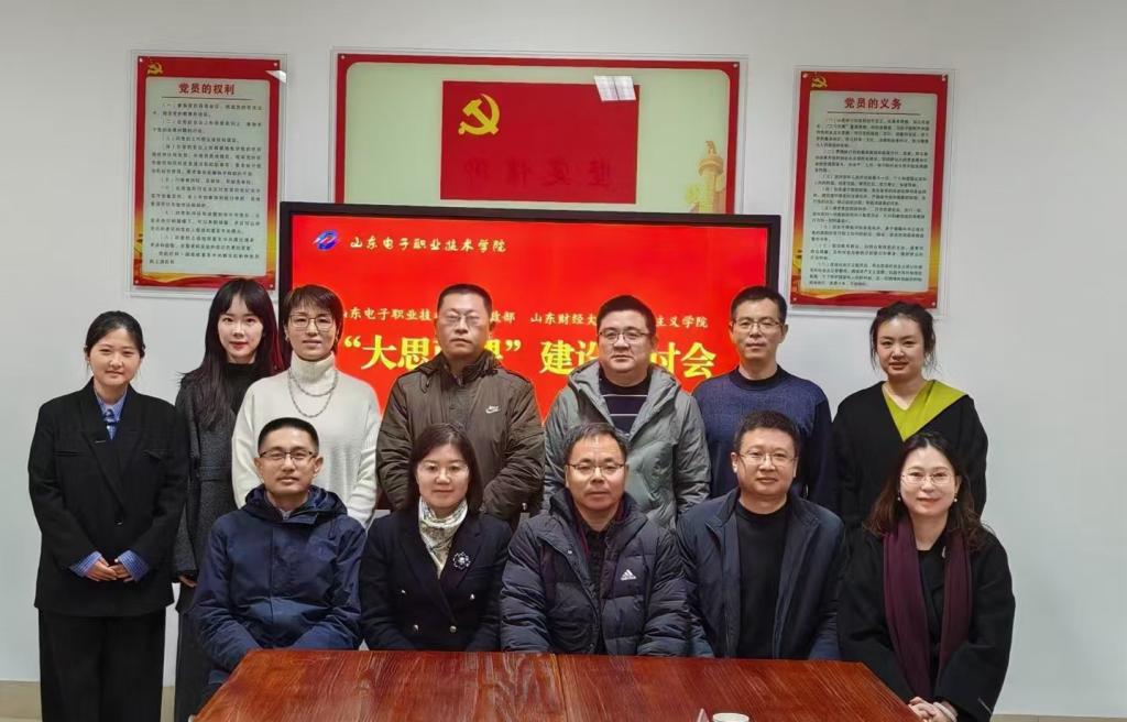 为深入学习贯彻习近平总书记关于思想政治理论课和高校马克思主义学院建设的一系列重要指示,落实《关于加强新时代马克思主义学院建设的意见》、《全面推进“大思政课”建设的工作方案》、《山东省大中小学思政课“双协同、双提升”项目工作方案》等文件要求,促进高校思政课教师之间的学习交流。山东财经大学马克思主义学院与山东电子职业技术学院思政部于12月23日联合举办“大思政课”建设研讨会。马克思主义学院党委书记刘国强,院长徐莹,副院长王敏、侯继迎,山东电子职业技术学院思政部主任张同胜,副主任何嘉,两校思政课教研室主任及青年教师代表参加了研讨会。