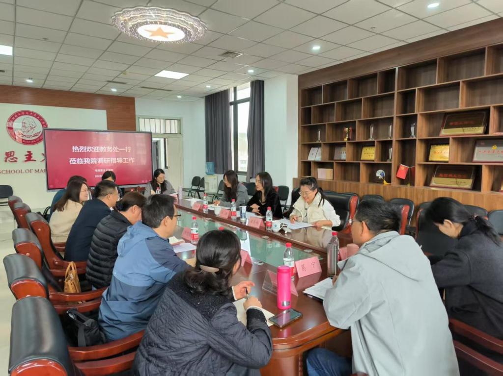3月12日下午,教务处副处长张澜一行莅临我院,在图书馆606会议室开展调研交流。学院党委书记刘国强、副院长王敏、各教研室主任及教学骨干代表参与交流。