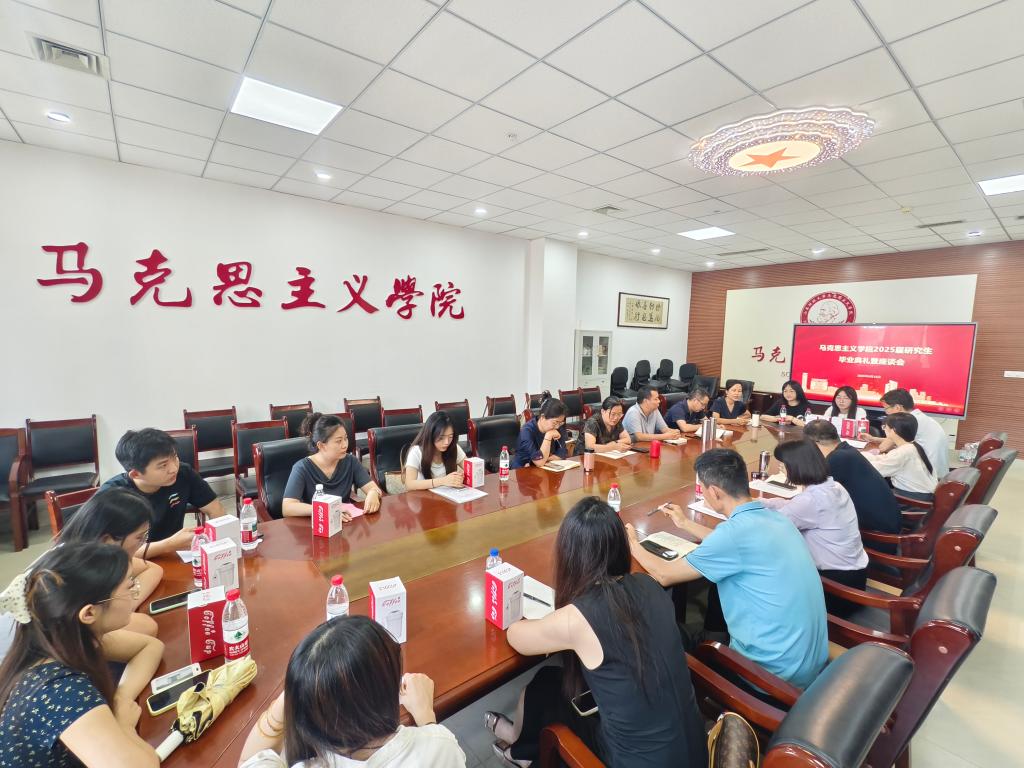 6月12日下午,马克思主义学院2025届研究生毕业典礼在学院606会议室隆重举行。学院领导班子、导师代表、全体毕业生、在校生代表参加。本次毕业典礼由党委副书记王昊天主持。