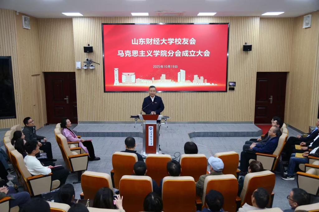 10月19日上午,山东财经大学校友会马克思主义学院分会成立大会在燕山校区逸夫楼103多媒体教室举行。校党委书记查玉喜、副校长张红霞与来自全国各地的校友代表及马克思主义学院教职工、退休教师代表、学生代表等120余人欢聚一堂,共叙情谊,同绘发展新篇。会议由马克思主义学院党委书记刘国强主持。