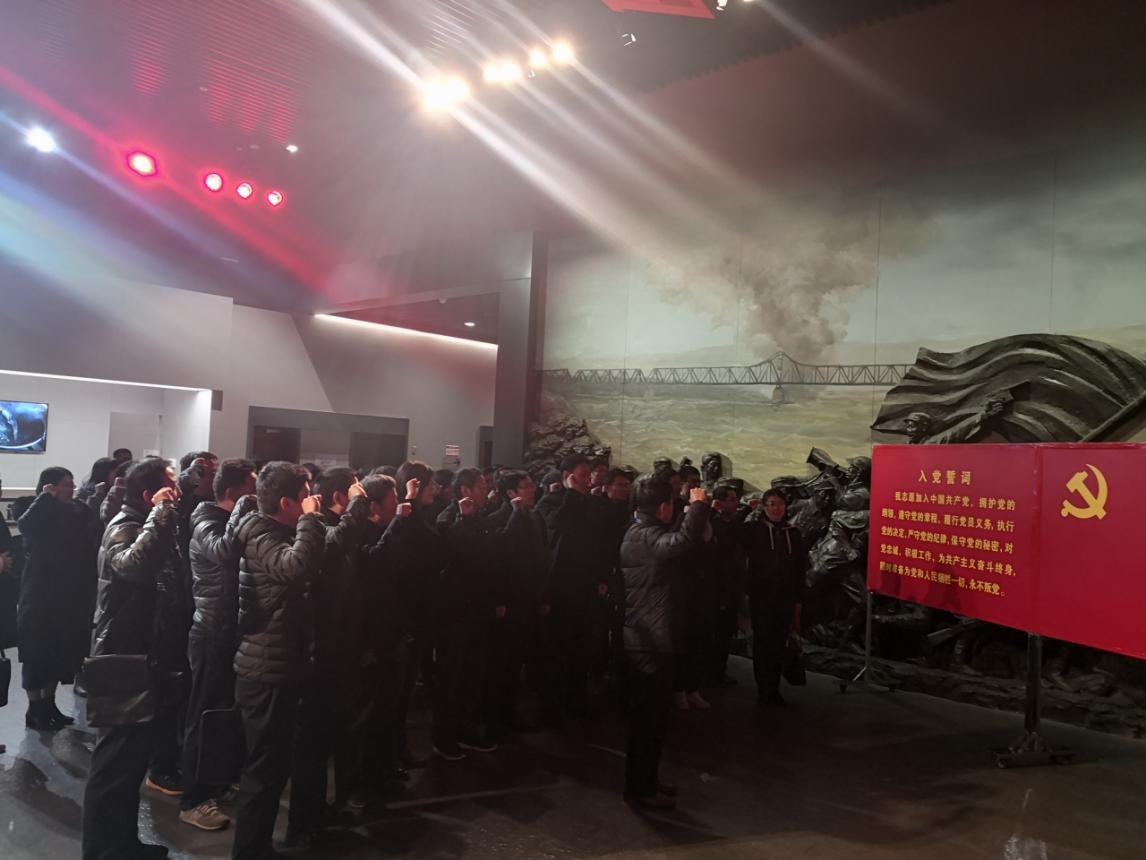 来到纪念馆大厅,党员们首先面对党旗重温入党誓词。在院党委书记郄捍烈领誓下,大家举起右拳,庄严宣誓,彰显马克思主义学院教师党员的坚定政治信念。