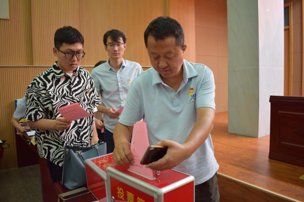 大会一致通过《中国共产党山东财经大学马克思主义学院党员大会选举办法》,表决通过监票人名单,宣读计票人名单。按照《选举办法》,本次换届选举以无记名投票方式,实行差额选举。新一届委员选举阶段,党员同志依次走到票箱前,投下了庄严一票。大会最终选举王昊天、王敏、石伟、徐莹、侯继迎(按姓氏笔画为序)5名同志为马克思主义学院新一届党委委员。