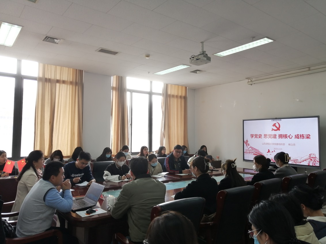 3月23日下午,山东财经大学党委组织部正处级组织员杨立忠应我院邀请,在学院606会议室讲授《学党史 思党建 拥核心 成栋梁》专题党课。本次党课由学院党委书记石伟主持,党委副书记王昊天和学院部分师生参加。