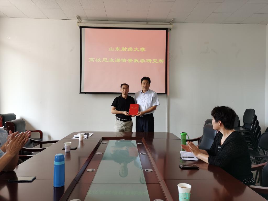 近年来,我院教师在思政课教学领域进行了大量积极有益的探索与尝试,并取得一些成绩。为进一步巩固成绩和加大研究力度,推动我校思政课教学改革,学院研究决定成立高校思政课情景教学研究所。成立仪式上,学院向新成立的高校思政课情景教学研究所所长、副所长颁发了聘书。成立思政课情景教学研究所是适应新时代思政课教学改革的需要,强调个性化专题式教学,发挥学生的主体性作用,进一步落实立德树人目标提升思政课教学效果的重要举措,学院将为研究所今后的工作提供有力的经费和人员保障。高校思政课情景教学研究所所长由李洪星教授担任,李洪星教授多年来致力于大学生优秀传统文化素养提升研究,以开展大学生优秀传统文化素养提升第二课堂精品活动为基础,以相关科学研究为引领,强调情景模拟与文化嫁接,围绕大学生优秀传统文化素养提升和全面成长成才提出了一些独到见解并培育出一批精品成果。李洪星表示,研究所将认真贯彻和落实习近平总书记在高校思政课教师座谈会上的讲话精神,努力研究、勇于探索,多出成果,出优质成果。下一步,要尽快充实团队,科学规划,积极开展情景教学研究和探索工作,力争早日建成优质的山东省首家思政课教学情景库,让更多的师生感受和体验到情景教学的魅力。