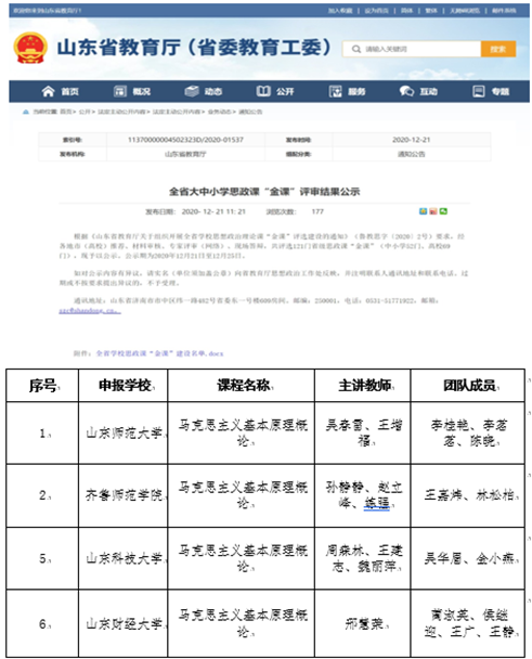 获评山东省思政课“金课”